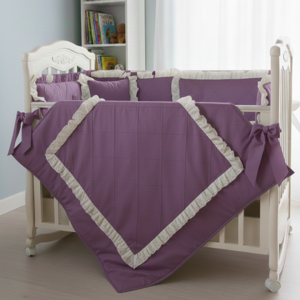 The bedding features plush padding for extra coziness and beautifully tied side ribbons for a refined, decorative look. Perfect for newborns, this set adds a warm and calming feel to the crib while ensuring a gentle, comfortable sleep environment.