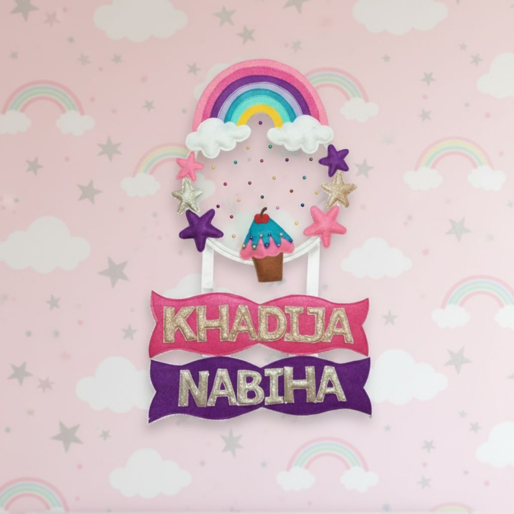 "Personalized felt wall hanging featuring custom name options, with additional customization available upon request."
